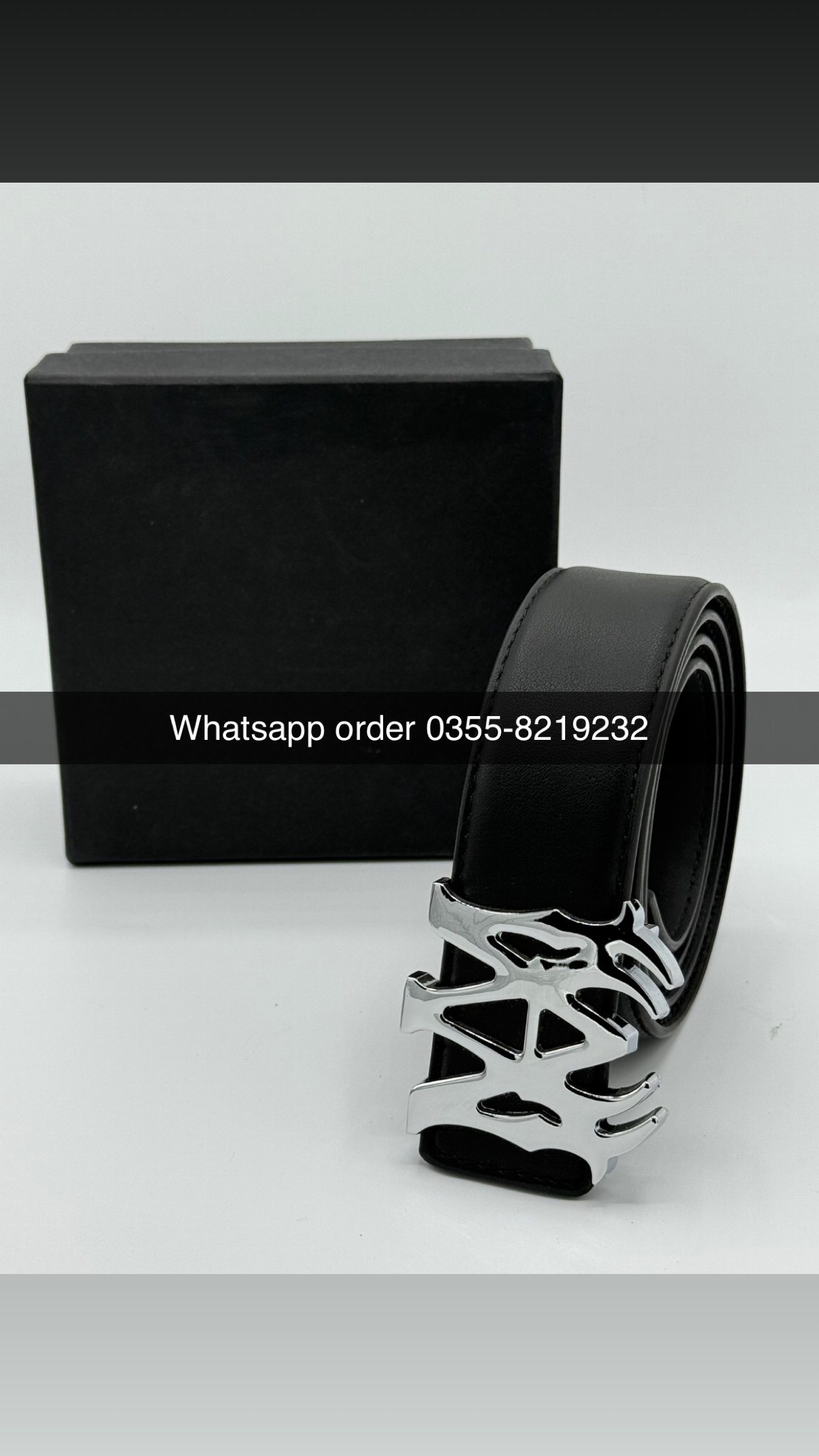 • Design: Sleek black strap with silver Amiri-style buckle