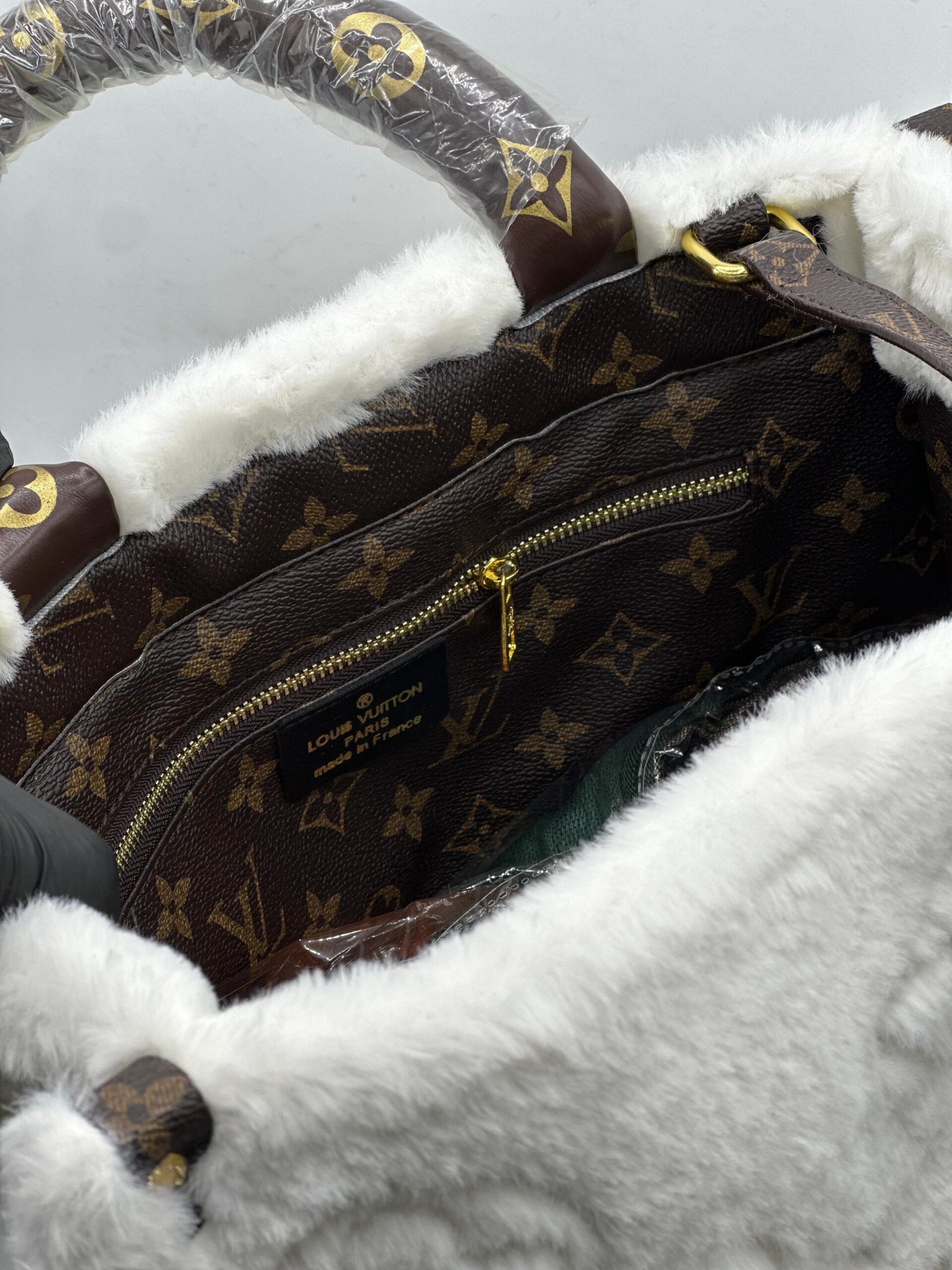 Lv white fur bag